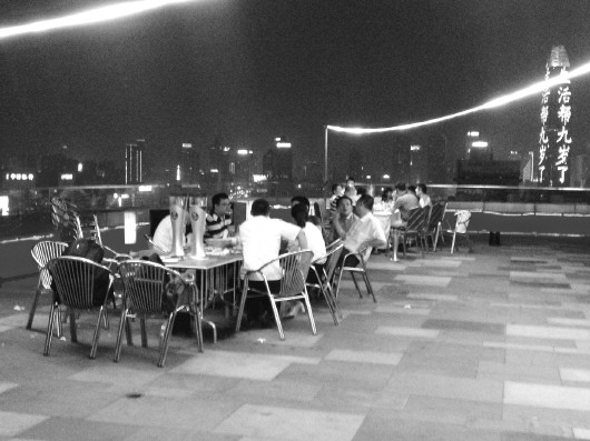 楼顶凉风习习,夏日闷热减轻不少。啤酒花园的服务员都身穿具有夏威夷风情的短袖上衣,穿梭于各餐桌之间。有些顾客吃完了还要再叫一份,打包带走。