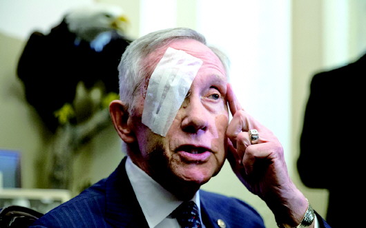 要从外观上看,最具视觉冲击的还是美国参议院民主党领袖里德的伤势。2015年1月20日伤后首次露面的他,右眼眉骨周围贴着大大的胶布。据说他是在一次“剧烈运动”中受的伤,鉴于“领袖”带伤回归,民主党议员们都对他报以热烈欢迎。
