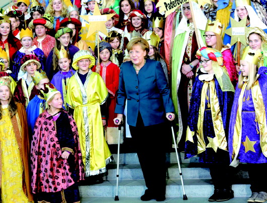 无论是在国内还是国际舞台,默克尔都被称为当今政坛数一数二的“铁娘子”。可是,“铁娘子”也有栽倒的时候。2013年12月22日,到瑞士享受圣诞假期的默克尔,在一次越野滑雪中不慎受伤。她最初认为自己可能只是严重瘀伤,结果结束假期返回柏林后,却被诊断为骨盆局部骨折。