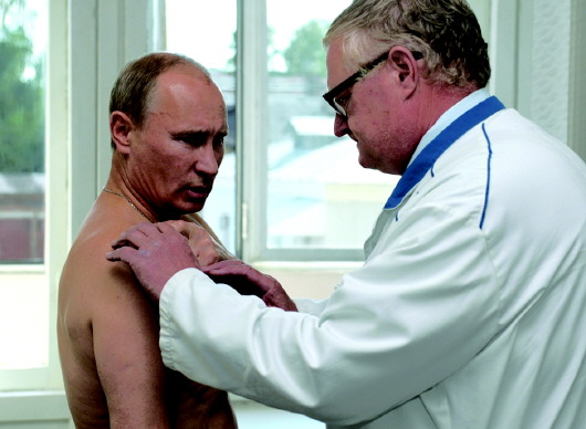 “铁娘子”遭遇过不测,爱好广泛的硬汉普京自然更少不了受个伤。2011年8月,普京在俄罗斯西部城市斯摩棱斯克视察时,在一次晨练柔道时拉伤了肩膀,不得不到医院就医。除了柔道,射击、潜水、滑雪、狩猎等展示男人强悍一面的运动项目,都是普京的最爱。