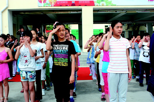 经九路小学加入到经五教育集团后,加强了体验式教育的研究,让德育浸润儿童心灵,学生在体验中成长。图为孩子们一起为爸妈表演《感恩的心》。 (史云虹)