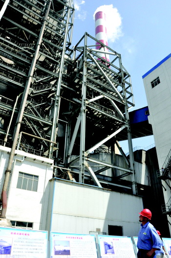 群众代表参观华能济宁电厂脱硫脱硝设备。 本报记者 公素云 摄