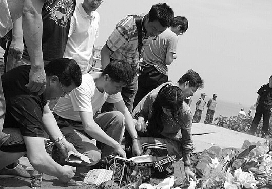 山东籍乘客亲属正在祭奠。 本报记者 王兴飞 摄