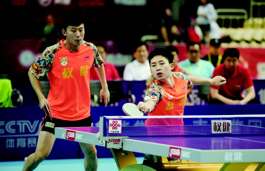 “兄弟之战”鲁能只赢了双打。 本报记者 周青先 摄
