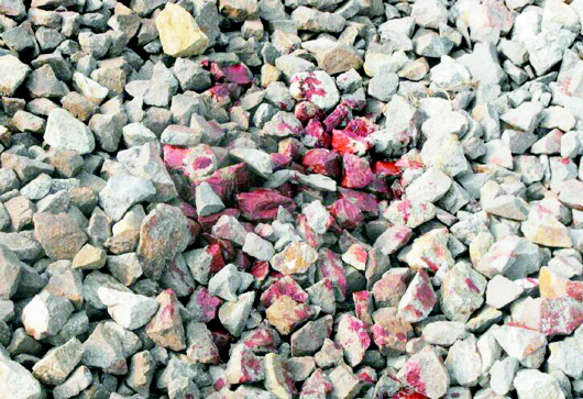 ◤事发现场铁轨旁的石子被老人的血迹染红。