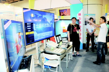 富士康推出的三款智能电视吸引了不少人关注。 本报记者 吕奇 摄