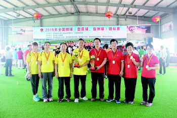 近日,在“中国最美乡村”江西婺源举行的2015年全国掷球(指弹球)锦标赛颁奖仪式上,由胜利油田组建的中石化和胜利油田两支代表队分别获得团体冠、亚军称号。据了解,本届全国掷球(指弹球)锦标赛分为团体和男、女个人三项比赛,有来自全国的10支代表队参加了角逐。为打好这次比赛,5月8日,胜利油田专门组织了“录井杯”指弹球邀请赛进行热身,经过一天紧张的比赛,选拔出由油气集输总厂和胜北社区输送的8名运动员,分别代表中石化和胜利油田两支代表队参加比赛。