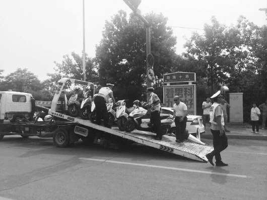 7日下午3时20分,六个青年骑摩托车经过长江一路渤海十路路口,由于摩托车驾驶过程中噪音较大,交警对六个年轻人进行制止,扣留了违规驾驶摩托车,保证了考场周边环境的安静。
