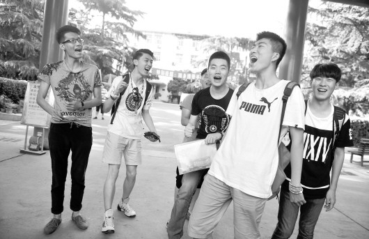 8日下午,高考最后一门课程结束后,在山东省实验中学考点,最先出来的考生兴奋地呐喊。 本报记者 王媛 摄
