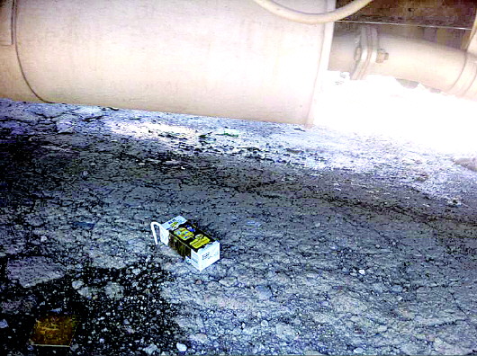 ▲车底下遗留着孩子出事时喝的酸奶。