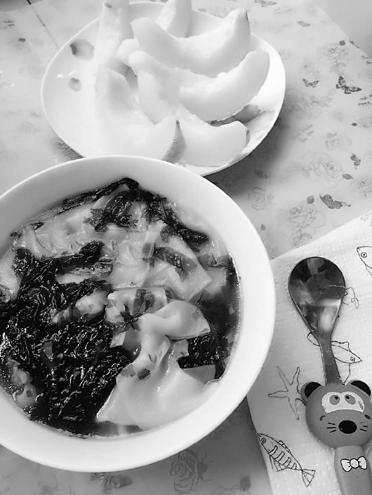夏日的早晨,来一碗鲜香的牛肉虾仁馄饨,搭配甜如蜜的甜瓜,一天的好心情从早餐开始!