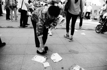 6月8日下午,英语考试结束,在德州一中考点外,大量的小广告塞入考生和家长手中,现场传单散落一地。 本报记者 马志勇 摄