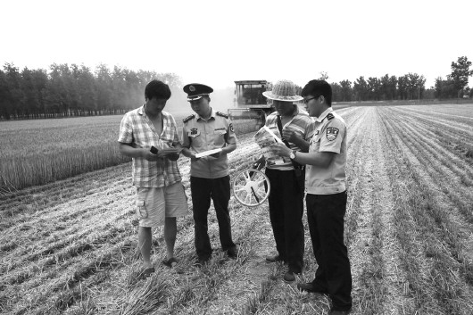 近日,单县公安局曹庄派出所民警联合消防大队带着麦收安全常识走上田间地头。据了解,为做好麦收期间的防火防盗防诈骗工作,确保麦收工作顺利进行,单县公安局曹庄派出所民警联合消防大队,全力开展防火、防盗、防诈骗宣传活动,积极为辖区群众创造一个安全稳定的收获环境。 本报记者 周千清 通讯员 李猛 摄影报道