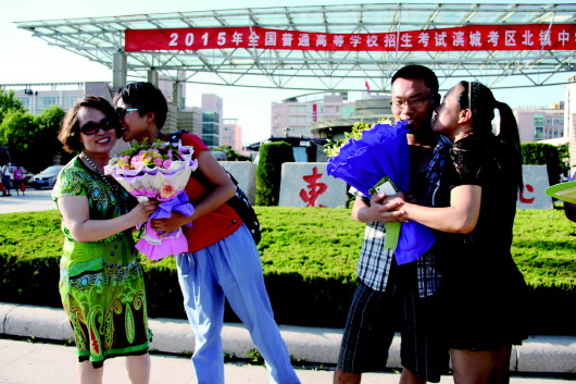 8日下午5点,2015年高考全部结束。记者从理科考点北镇中学校门外发现,约有10位家长抱着花在外等待考生,预祝考生取得好成绩,还有商家别出新意,免费送康乃馨给考生,让考生把鲜花送给陪考的父母,表达对父母所的感恩之情。