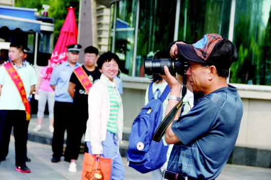 8日上午8点15分左右,北镇中学考点外,炙热的太阳蒸烤着聚集在校门口的陪考家长,68岁的老人马延成在烈日下举着相机正在拍学校大门,记录孙女拼搏三年青春的地方。去年孙女进入高三,因为儿子和儿媳妇都有工作抽不出时间陪孩子,家住惠民的马延成便和老伴在北中附近租了一套房子担起了孙女高考陪读的后勤工作。马延成喜爱摄影,在陪读的这一年中,经常独自外出拍摄滨州的美景和各种温情场景。今年高考期间,他的镜头下只有一个主题,就是“2015孙女的高考”。
