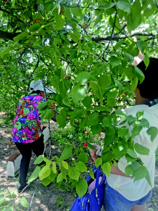 张六真梨园里目前备受游客们的青睐的是已成熟的“金太阳”杏,是从德国引进,具有个头较大、皮薄肉多、口感香甜等特点。