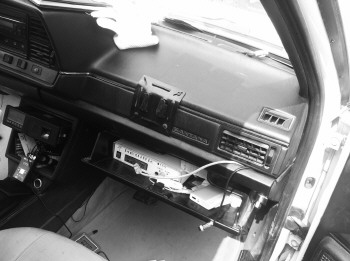 10日上午,记者在站前街西湖馨苑小区北门北侧的机动车道上看到了崔先生停放在路边的教练车。原本安装在车内副驾驶前的两部电脑显示屏已经不翼而飞,后备箱的电脑主机已经被人盗走,连接主机的线缆已经被人用工具剪断。