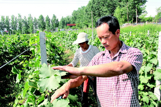 麦收时节,郓城县张营镇彭庄村彭存良夫妇不忙麦收却忙着在葡萄园修剪管理。如今,麦收已成为当地农民的业余活,一年四季忙增收正成为主流。为发展“一村一品”,带动农民种植葡萄增收,张营镇不断加大科技支农力度,积极引进适宜栽培的新品种,组织工程技术人员走村入户,使得葡萄种植面积不断扩大。 本报记者 邢孟 通讯员 魏忠友 李英 摄影报道