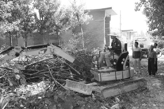 郝家村包村干部盯靠到村,动用机械清理存量垃圾。