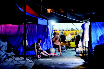 10日天气炎热,不少市民夜间在户外纳凉。