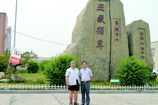 李三军(右)和中国塑料改性委员会会长刘英俊在泰山脚下合影留念。