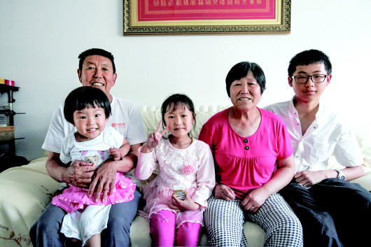 青岛市城阳区上马街道前程社区,自上世纪90年代起,村民陆续出国打工,一度多达200人。他们的孩子大多生在国外,但不得不送回国内交给老人抚养。孩子们吃着父母寄来的洋奶粉,有很多的零花钱,与父母却一年见不上几次面。图为11日,村民孟老汉和老伴与孙子孙女合影,他的两个儿子和儿媳都在西班牙做生意。 本报记者 杨广帅 摄