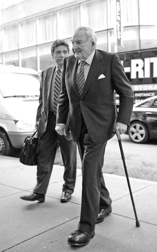 MOMA已经提前为戴维·洛克菲勒举行生日聚会,戴维·洛克菲勒当天穿着一身黑色西装,借助助行器出席活动。尽管鲜在公开场合露面,戴维·洛克菲勒看起来仍很活泼。