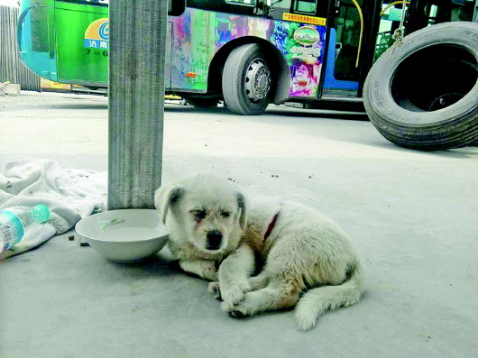 小狗很听话,既不乱跑,也不乱叫。车队工作人员决定先留下它养着,等狗主人来寻时再奉还。工作人员给小狗洗了澡,拴在办公室边,大家用吃剩的饭来喂它。小狗就这样在车场安下了家。