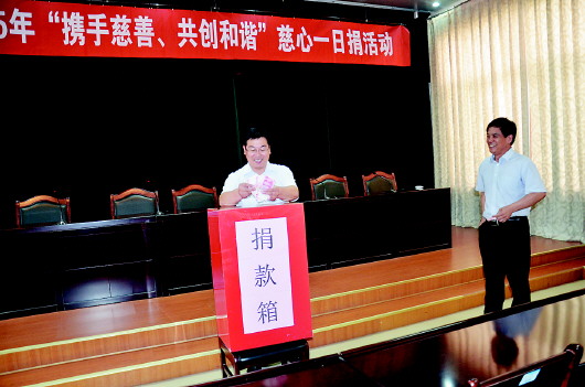 6月15日,文化东路街道办事处四楼会议室内,街道2015年“携手慈善、共创和谐”慈心一日捐活动举行。来自街道机关及所属事业单位全体工作人员参与,共募集善款18000元。