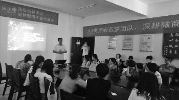 6月13日下午2点,在月亮湾A区物业楼二楼会议室,聊城市“巾帼建新功 共圆创业梦”公益活动正在举行,活动免费为家庭妇女传授移动互联网创业知识,受到大家一致好评。