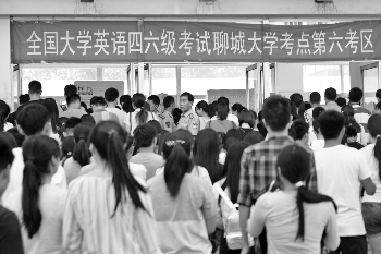 6月13日,全国大学英语四、六级考试开考。全国大学英语四、六级考试实行“多题多卷”模式,即在同一考场内采用内容不同的试题组成的多套试卷实施考试。图为:在聊城大学考点,学生们参加考试。
