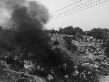6月15日下午5时许,经济技术开发区杏园村内一处荒地突冒浓烟并发出刺鼻气味,初步调查为多个废旧轮胎被点燃所致。 本报记者 张磊 摄