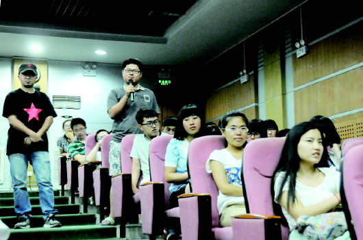▲吴霞为大学生作演讲。