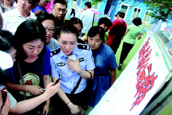 13日,海伦路幼儿园公示幼儿录取名单。 李珍梅 摄