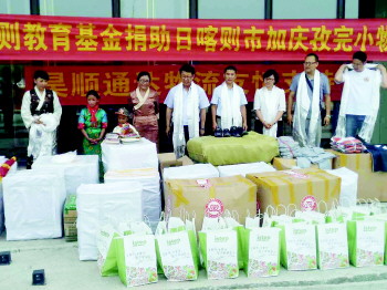 14日,日喀则加庆孜完小学校长仓米带领师生来到青岛,接受物资捐赠,并与岛城的学校结对子。当日,青岛情牵日喀则教育基金会工作人员将价值数十万元的校服、图书等物资交到日喀则加庆孜完小学师生手中。 本报记者 陈之焕 摄影报道