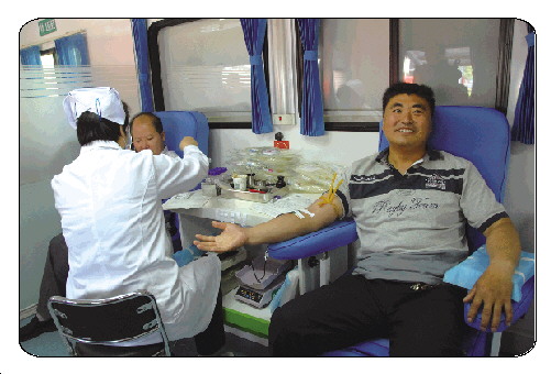 记者在市政府广场前的采血车上看到,现场早已排起长龙,不少市民正秩序井然地填写献血材料、化验血型,耐心地等待采血。工作人员不时地向市民讲解无偿献血常识、注意事项等。“我觉得献血是举手之劳的事情,今天前来献血只是尽了一些绵薄之力。”前来参加无偿献血的林先生对记者说,他和爱人献完血后顺便在公园散散步,既锻炼了身体,又献出了一份爱心,“感觉整个身心特别愉悦!”