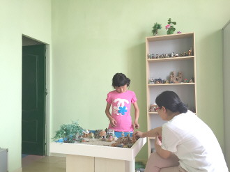 山亭11岁女孩邓惠元出走的事情经本报连续报道,引起了社会的广泛关注。一波三折,小惠元回到了家,但社会对她的关心并未停止。15日上午,山亭区教育局为邓惠元联系了心理辅导老师,希望能够通过心理辅导让她试着敞开心扉。心理测试发现孩子缺乏爱,内心孤独。得到这样的结果,小惠元的爸爸毅然决定带她一起去上海。而对于父亲的决定,惠元终于高兴了。图中,邓惠元正在做心理沙盘测试。