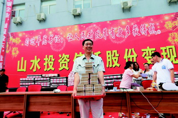 2015年6月22日下午,位于济南市党家庄的山东水泥厂内热闹非凡。根据自愿原则,申请股份变现的职工领取到了丰厚的回报,个个脸上洋溢着幸福的笑容。据悉,第一批报名的713人自6月22日起,将陆续领到变现资金。