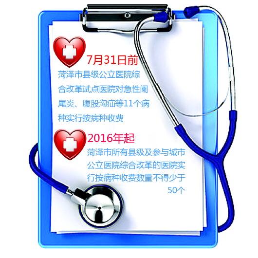 7月底前,菏泽市县级公立医院综合改革试点医院对急性阑尾炎等11个病种实行按病种收费