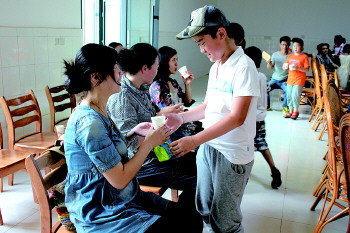 了解茶园自然少不了茶文化的介绍。在茶园会议室,40人围坐一起欣赏了赏心悦目的茶艺表演。美妙的配乐响起时,小记者和家长们纷纷举起手机,记录自己的见闻。茶艺师也不忘在表演间隙介绍日照绿茶。她用通俗易懂的语言教给大家体会茶香茶韵的方法和诀窍。