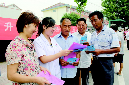 为保障端午节饮食安全,假期前夕,邹平县孙镇中心卫生院的医务人员走上街头,来到社区、超市,大力宣传端午节饮食安全知识。医务人员就粽子、包子等食品制作的关键环节,如原材料的选用、搭配、加工保存,以及食物的相生相克等制成宣传页,并现场对居民做详细讲解,提醒居民避免制作、食用过程出现食品安全问题,增强广大消费者食品安全意识,提高科学安全饮食水平。图为医务人员向居民讲解粽子安全知识。