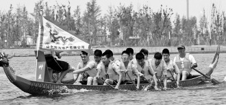 ▲20日,威海南海新区首次举办龙舟赛。 记者 陈乃彰 通讯员 刘昌勇 摄