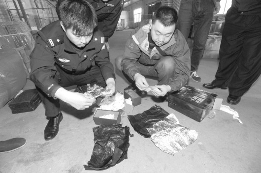 天津某快递公司仓库,警方当场截获南方邮递过来的冰毒90多克。