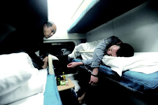 ◤深圳开往济南的火车需要25个小时才能到达,一路上刑警队员轮流看管嫌犯。