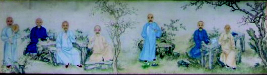 在台中的古玩店里,我们看到了许多东西。其中有一个绢画,上面有几十个清代的进士像,后边还有题记,写着这些进士的朋友和交游情况,总共有十几米长。古玩店的老板不大重视这幅绢画,开价10万新台币,相当于2万多人民币。我们说能不能再便宜点,老板说也行,就让我们再多拿几张小名头的画。