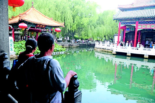 24日,一场小雨让许多市民对趵突泉的复苏产生热望。大家跑到公园一看,水位倒是比前一天又涨了三厘米,但三个泉眼都不喷了!简直怪事。 本报记者 周青先 摄
