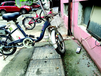 24日上午,家住科苑小区3号楼的赵女士准备出门买菜,停在楼下的电动车早已经充好了电,因为她每天晚上都会从所住的3楼甩下电线和插座,直接充电就行了。但这样一来,电动车就不能放到车棚了,遇到雨雪天气只能用雨伞或雨衣挡一下。