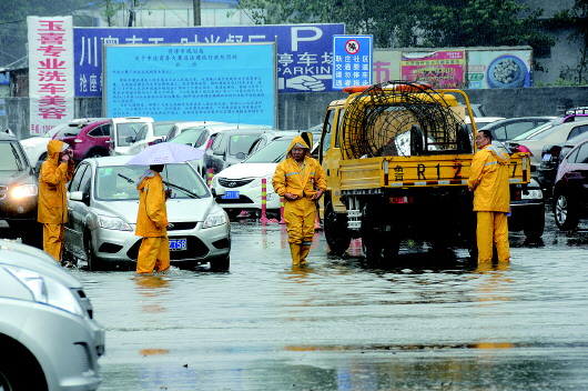 虽雨势较大,但市区大部分路段当天上午10点多恢复正常通行