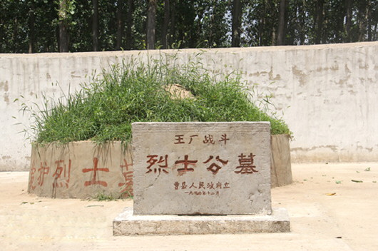 王厂战斗的主战场在2公里外的郑庄村。1943年9月28日,在郑庄村西南角一处长30多米、宽20多米的土墙围子里,鲁西南军分区司令员朱程、专署专员袁复荣率领一百余名战士,与围墙外的三千多名日伪军鏖战8个小时,最终百余名八路军将士壮烈牺牲。