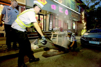 24日晚,李沧城管执法局对金水路沿线、大崂路和李村商圈等区域的露天烧烤行为进行整治,查处固定门头占路经营、野烧烤摊占路等行为30余起,暂扣烧烤炉具20余个。